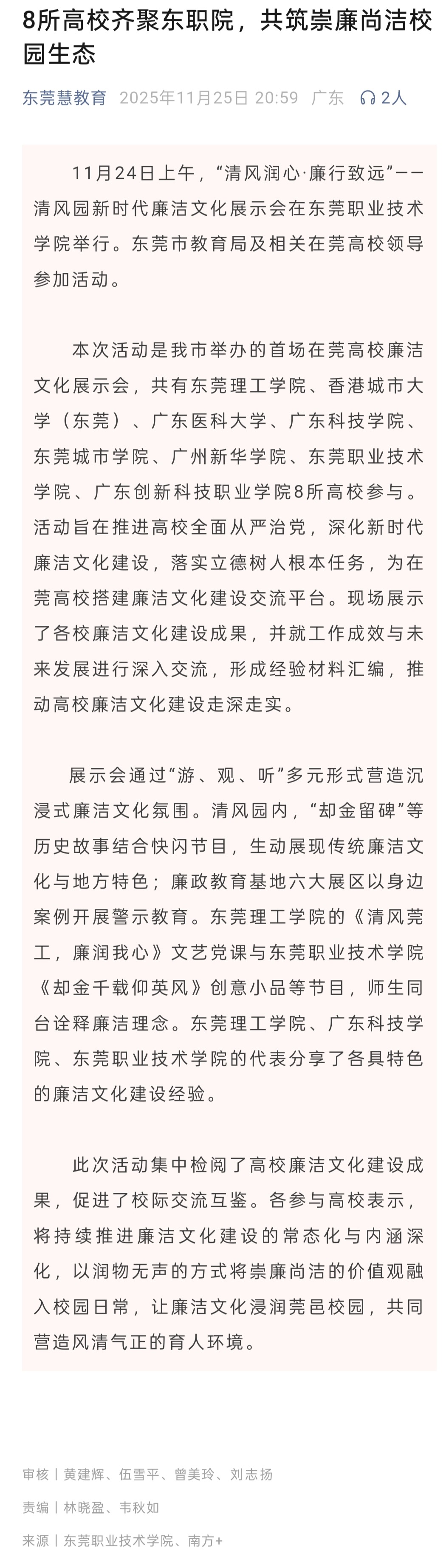 【东莞慧教育】8所高校齐聚东职院,共筑崇廉尚洁校园生态